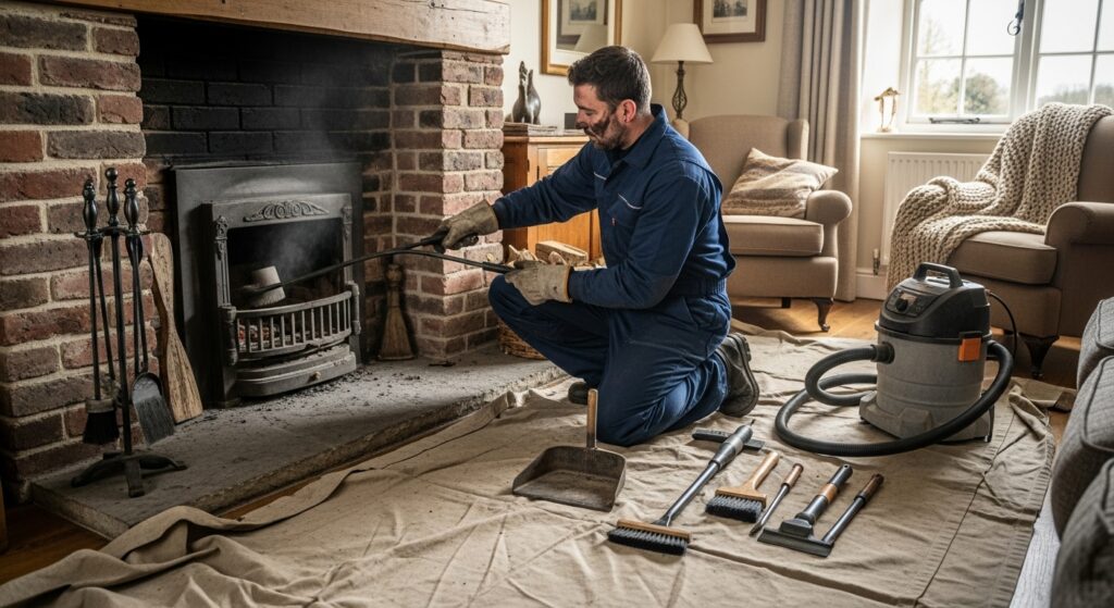 Remove creosote buildup, soot, and blockages to improve airflow and prevent chimney fires.